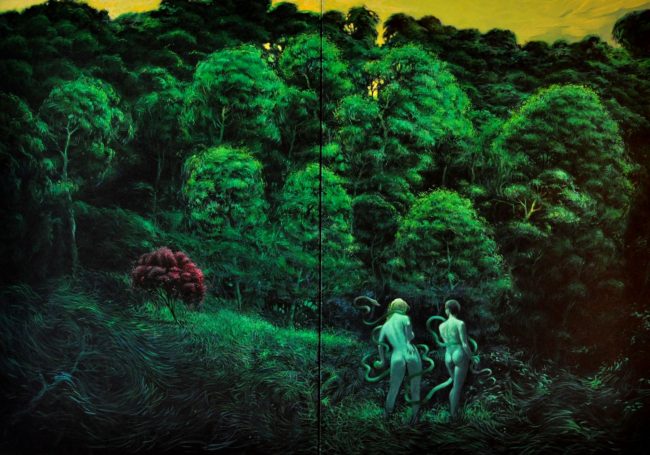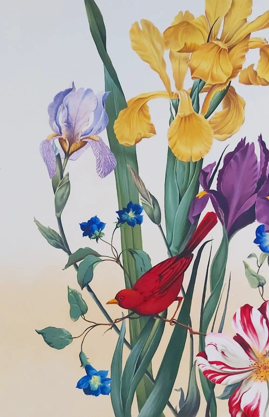 Après sa série de grands formats à l’huile ayant pour thème les forêts d’ici et d’ailleurs, l’artiste se renouvelle en proposant au public Bordelais une exposition Bouquet Final inspirée des fleurs et plus précisément des tapisseries européennes du XvIII°s. Si l’artiste se renouvelle radicalement, c’est qu’il ne fait pas parti d’une galerie, ni d’une écurie où son art serait contraint par les règles qui prévalent dans le marché de l’art. Ici la liberté de création est maîtresse
