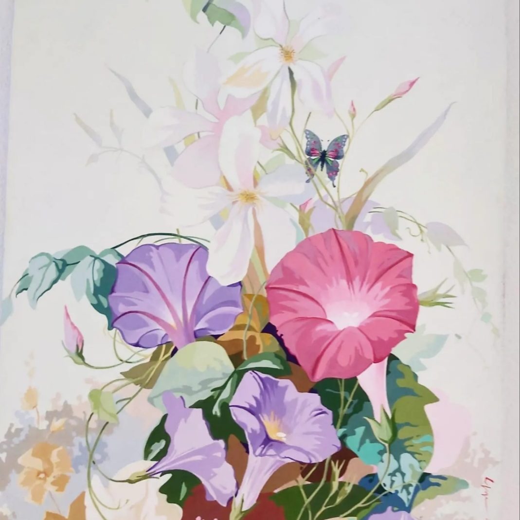Françoise FAYE en visite à Bordeaux -Historienne de l’art- L’œuvre de Pierre Lafage met en lumière un monde caché de fleurs, en insistant sur un beau contraste entre des couleurs vives et des pastels fades, l’artiste nous invite à découvrir un paysage à la fois intime et fantastique, qui nous plonge dans un conte de fées fleuri. D’un fond éclatant qui évoque une tapisserie à l’ancienne, saisi a la gouache, les fleurs de Pierre évoquent le désordre sauvage de la nature. Son œuvre met en valeur des couleurs tirées de la nature, rouge, orange, rose, et jaune vif qui ressortent de l’arrière-plan pale et pastel, ce qui met en lumière ses fleurs ; Parfois, il contraste des couleurs pastel avec un fond foncé, ce qui donne l’illusion de lumière et profondeur dans sa peinture. Ses fleurs, de silhouette ronde et solide, évoquent un sentiment apaisant pour le spectateur, alors que les tiges actives s’enroulent vers nous d’une manière mouvementée et énergique. En regardant de près, sa présentation délicate et romantique, les fleurs révèlent d’exquis détails. Des petites coccinelles, fourmis, scarabées, et papillons, ornent son travail d’une manière enjouée. Il est facile d’imaginer que l’on s’est plongé dans un autre monde fleuri de couleurs et de vie.